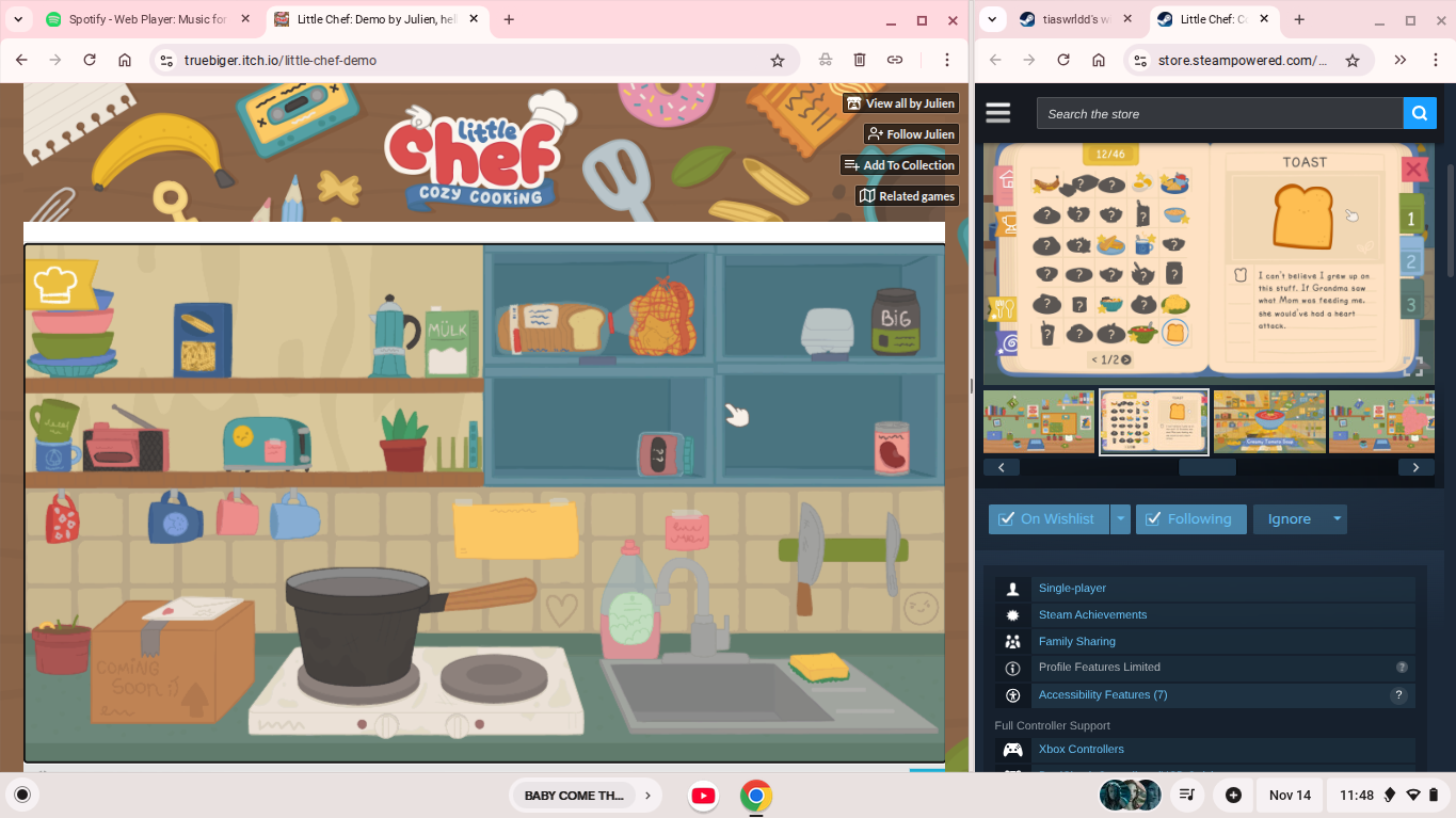 might've commented already, but seeing this demo on web is such a joy, struggling to make a few of the "bad" receipes, like the soggy toast :") (also i just noticed that the toaster actually works and theres a way to pull out a bitten piece of toast lmao)